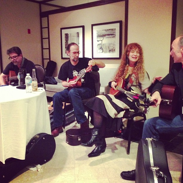And he plays a mean guitar. When I was a World Fantasy in Toronto, I watched him jamming with MaryAnn Harris, Charles de Lint, and Patrick Nielsen Hayden (Larry’s on the far right in the photo).